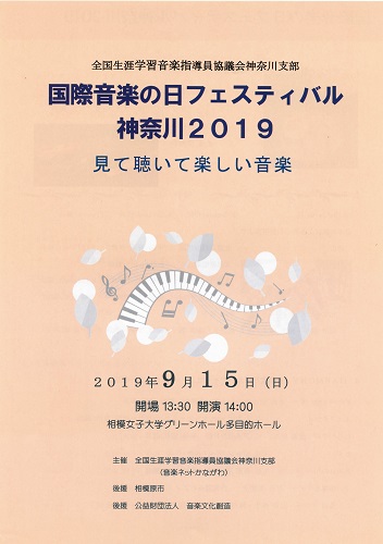 国際音楽の日フェスティバル神奈川 2019 国際音楽の日フェスティバル 2019.09.152021.08.08 2019年9月15日(日) 13時30分開場 14時00分開演相模女子大学グリーンホール 多目的ホール ピポロン合奏団 ~ リコーダー4重奏みゅ~ずHARMONY(有隣堂戸塚カルチャーセンター リコーダー教室)ファンタシカ バテリアメロディ パレット音楽絵本「ヘンゼルとグレーテル」